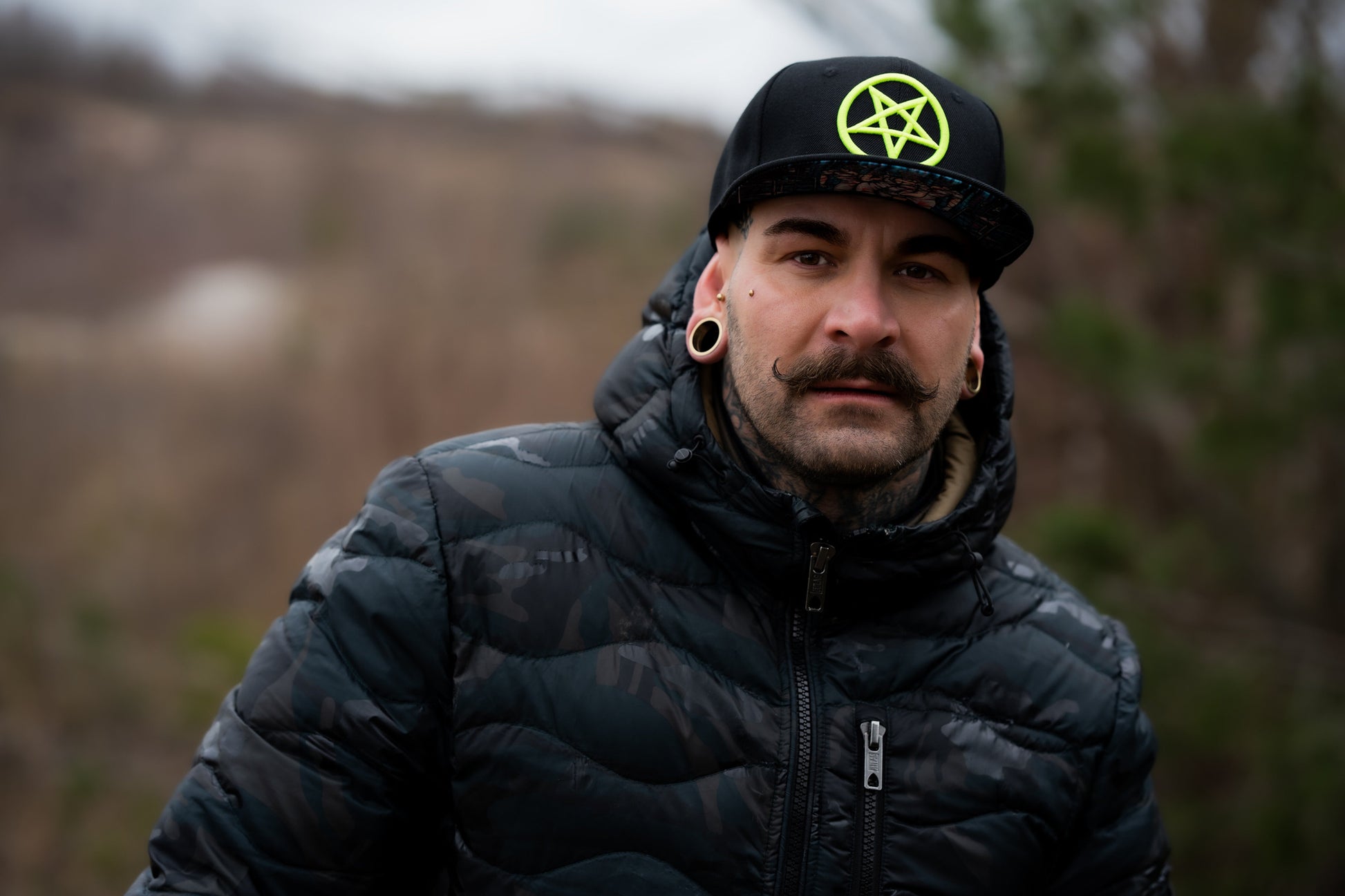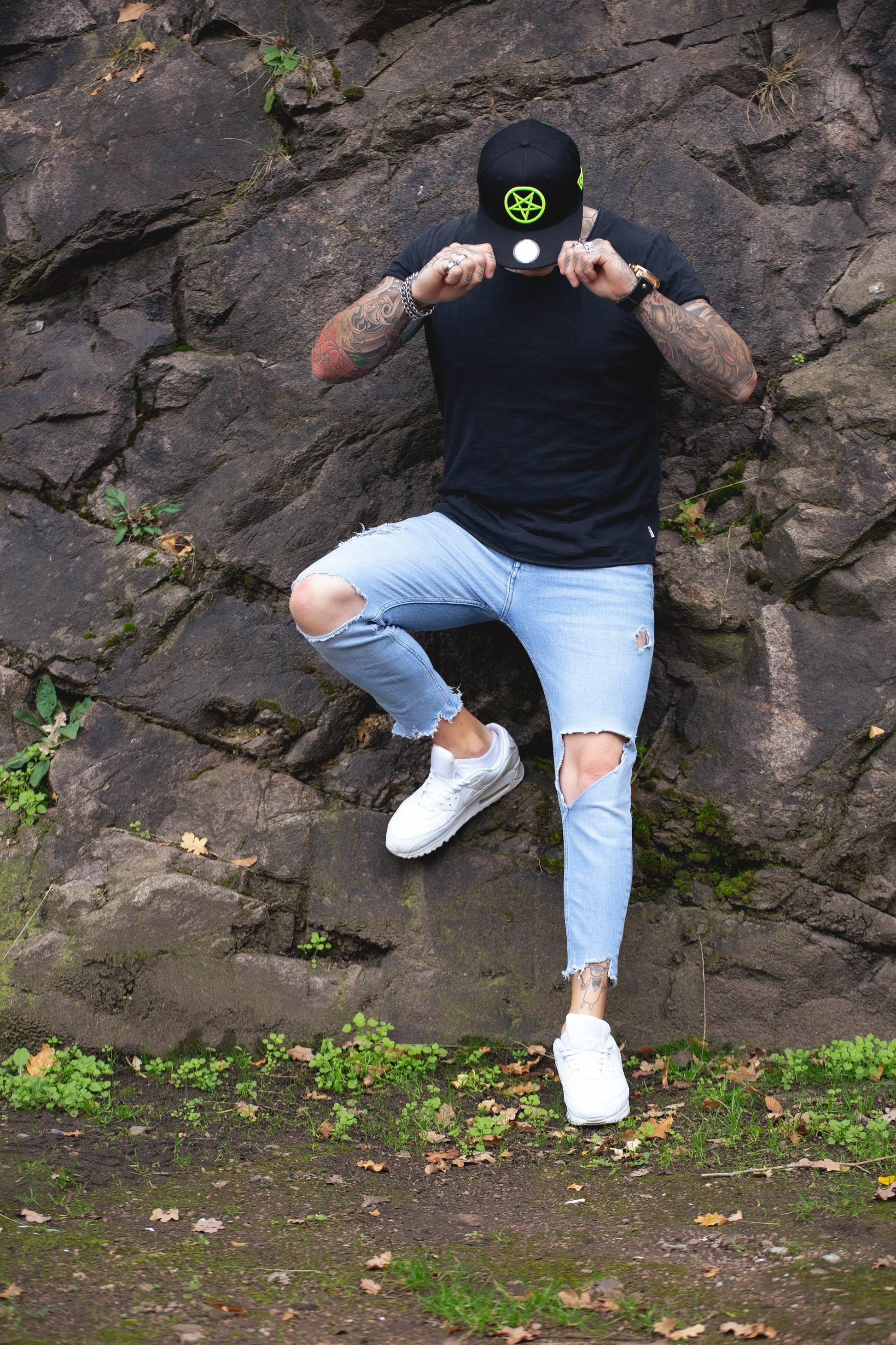 - Front logo is a pentagram in neon green