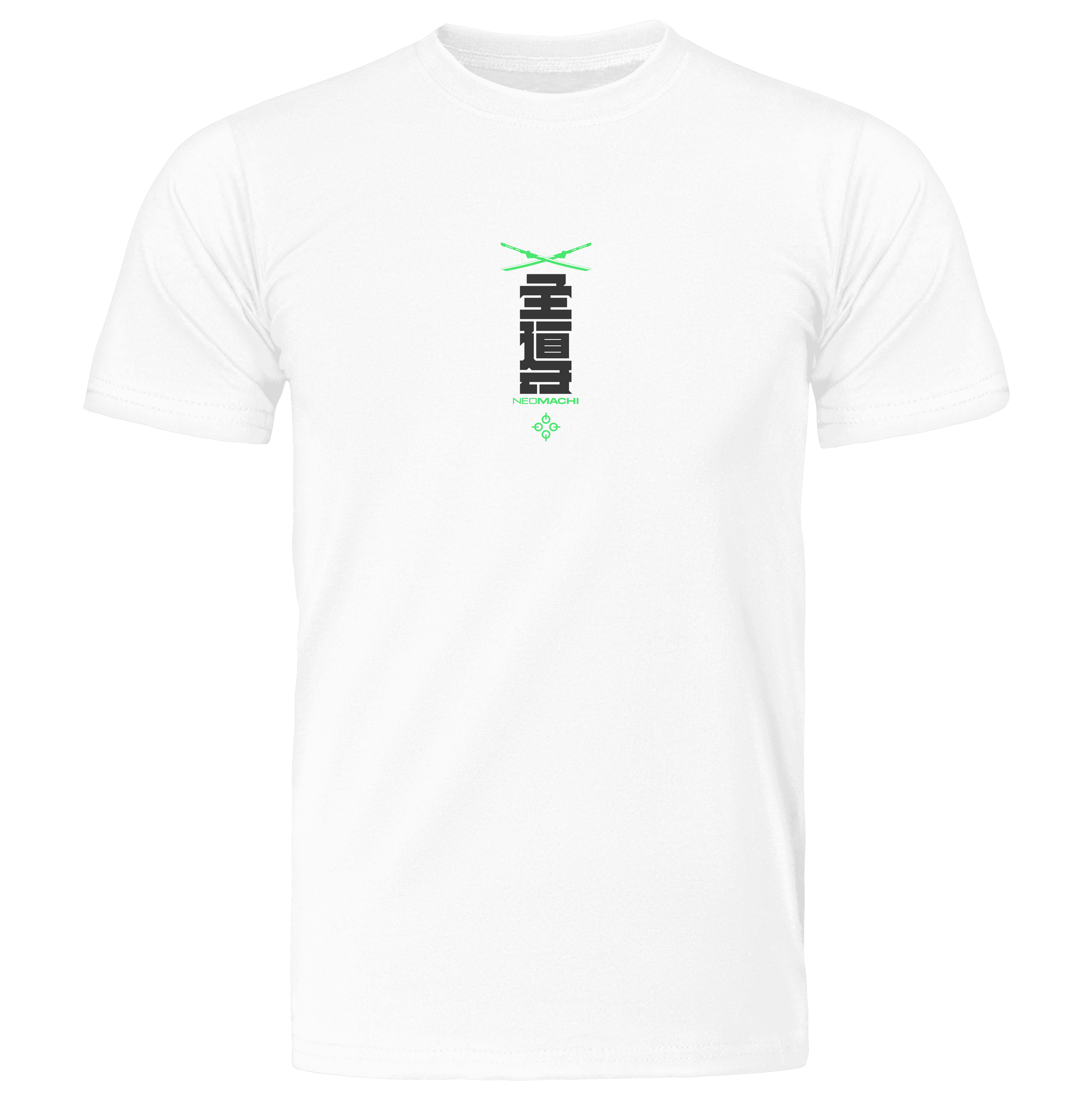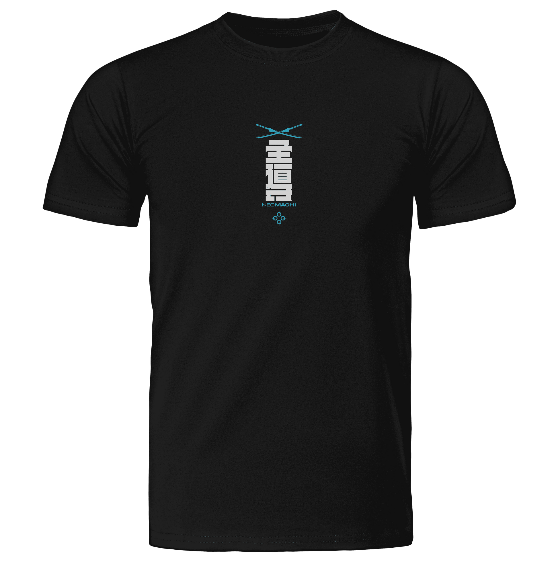 With our LEAD design it's like we took minimalism and gave it a sci-fi twist. The bold Kanji symbol in the middle that means LEAD. It's all clean lines and no fuss with its black and white look – totally minimalist and straight to the point. But then, boom! We've thrown in these neon katanas that look like they're straight out of a futuristic movie, adding a whole bunch of cool to the mix.