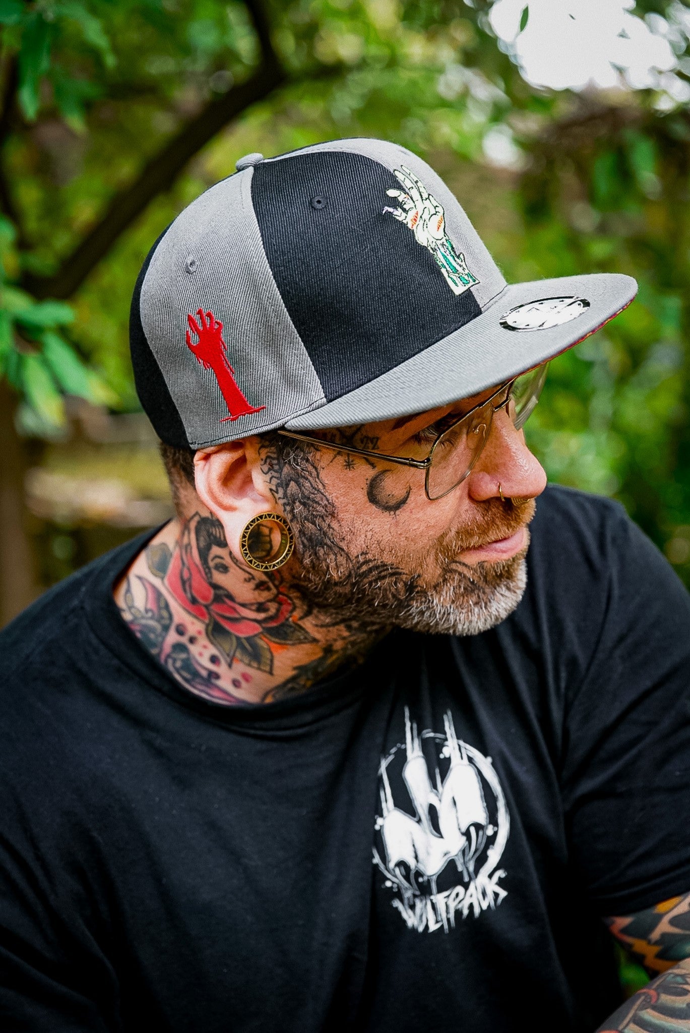 o Front logo is a damaged hand of a zombie